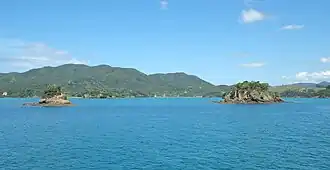![]() Mahenotiti Island (right) in front of Tawiriwiri Island and Kaingahoa Bay | |