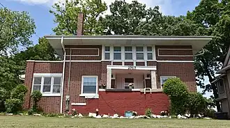 The Mahnke House is an historical residential building located in Des Moines, Iowa, United States. The house was built by prolific Des Moines builder Fred W. Weitz in 1909 in the Prairie School style.[2] The exterior is covered in Flemish bond brick veneer. It features a hip roof, a single-story west side solarium, a rear porch and a flat-roofed centered front portico with a raised entrance and square paned window lights. George and Emma Mahnke owned the house between 1909 and 1952 when they transferred the property to the Des Moines Annual Conference of the Methodist Church. The house then became the residence of the organization's superintendents. It was individually listed on the National Register of Historic Places in 1983, and it was included as a contributing property in the Ingersoll Place Plat Historic District in 2000.[1][3]