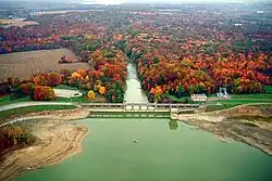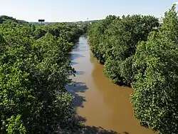 The Mahoning River[1] is a river in northeastern Ohio and a small portion of western Pennsylvania. Flowing primarily through several Ohio counties, it crosses the state line into Pennsylvania before joining with the Shenango River to form the Beaver River. The Mahoning River drops from 1,296 feet (395 m)[1] at the headwaters near Winona to 761 feet (232 m)[1] at the outfall near Mahoningtown, Pennsylvania. It is part of the Ohio River watershed. The name is said to derive from either the Lenape or Shawnee languages and mean "Deer Lick," as the area was once known for salt springs,[4] but it's possible the name of the Mahoning and several other similarly named landmarks and places in western Pennsylvania (Manayunk, etc) could come from the Lenape, mënehokink (may-nuh-ho-keeng), meaning "place to get water."[5]