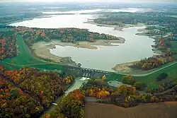 The Mahoning river is susceptible to frequent flooding during high rain events. A days long flood lasted almost continuously from March 23 to March 26, 1913. Youngstown residents were without water. Damage reached to communities throughout the area, such as Leavittsburg and Lowellville. Losses to the busy industrial area in the region reached the millions of dollars. Flood waters nearly reached the roofs of Republic Steel's plant. Some damaged bridges collapsed. Several water control infrastructure projects followed: The Lake Milton dam was built from 1913 to 1917.[8]