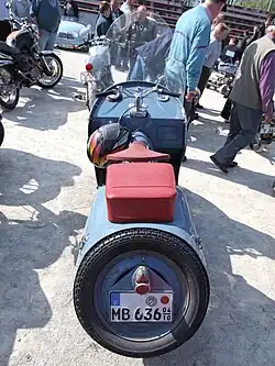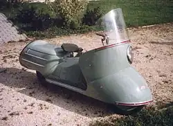 The Maico Mobil is an early touring motorcycle made by Maico between 1950 and 1958. Conceived and marketed as a “car on two wheels”, the Mobil had body panels that enclosed the drivetrain, protected its riders from the elements, and included an integral pair of panniers and a mount for a spare tyre.[1][2]