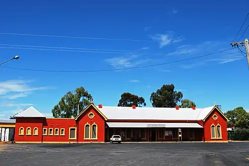 By 1877, there was significant political pressure to minimise the diversion of trade from western New South Wales to Victoria and South Australia via river trade along the Darling and Murray Rivers.[4] The town of Bourke had become the key centre for pastoralists in western New South Wales since its formation in 1861. Provision was thus made to extend the line to Dubbo, reaching Wellington in 1880 and Dubbo in 1881. At the time, Dubbo had grown into a town of strategic importance on the stock routes between northern New South Wales and the Victorian goldfields.