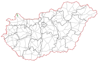The Main road 15 (Hungarian: 15-ös főút) (formerly Main road 150) is a south–north direction First class main road in the Kisalföld, that connects the Main road 1 change to the border of Slovakia. The road is 17.5 kilometres (10.9 mi) long.[1] Most of the traffic was taken over by the M15 motorway.