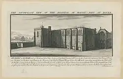 The original buildings consisted of one large hall (later referred to as the Pilgrims' Hall)[1] with a kitchen and living quarters attached for the Master and Brethren who 'practised hospitality to all strangers'. The hospital accommodated permanent pensioners and other wounded and poor soldiers, as well as pilgrims.[3]