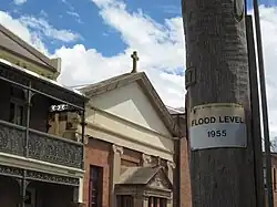 Signs on Maitland's power poles indicate the depth of the 1955 floods
