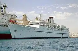 | Ocean Majesty | 1966 | 1994–2023 | 10,417 GT[27][28] | Currently serves as a floating hotel for asylum seekers in the Netherlands.[29] | ![]() |