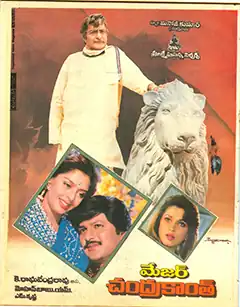 Major Chandrakanth is a 1993 Indian Telugu-language action drama film directed by K. Raghavendra Rao and written by the Paruchuri brothers. Produced by Mohan Babu under the Sree Lakshmi Prasanna Pictures banner, the film stars N. T. Rama Rao in the title role, alongside Mohan Babu, Nagma, Ramya Krishna, Sarada, and Amrish Puri.[1] The music for the film was composed by M. M. Keeravani.[2]