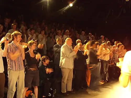 On 11 and 12 June 2010, the Khaleej Aden Theater Troupe performed Mak Nazl at the Grips Theater in Berlin,[4] making it the first Yemeni play ever performed in Europe. The performance was facilitated by the German House in Yemen, which supported the troupe's travel and promotion.[6] The musical continued to be performed in Arabic, with German subtitles provided.[7] The Berlin performances were met with enthusiasm,[4] with tickets selling out days in advance. The play received a standing ovation that lasted for nearly eight minutes—a rare honor in Berlin's theater scene. The German press praised the production for its originality and for successfully conveying Yemeni culture to a European audience, despite the language barrier.[8]