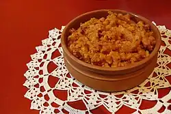 Makalo (Macedonian: Макало) is a traditional Macedonian side dish. The main ingredients include oil, garlic and peppers although variations in the recipe can also include dry embroidered peppers, mashed potatoes, aubergine, leek and onion. It is usually served as an addition to stews or as a spread on bread.[1][2]