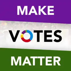 Make Votes Matter is "the cross-party campaign to introduce Proportional Representation to the House of Commons, led by democratically-organised activists in a united movement for electoral reform."[2] It was co-founded by Owen Winter, Klina Jordan and other activists.[3] It advocates for the replacement of the first-past-the-post currently used for elections to the House of Commons. Make Votes Matter advocates a proportional representation system (in line with the rest of Europe), campaigning for it based on the principles established in the Make Votes Matter Declaration. These are that a voting system should ensure: