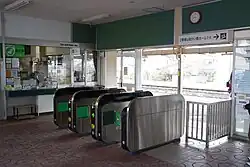 The station has a "Midori no Madoguchi" staffed ticket office. Suica farecard can be used at this station.[1]