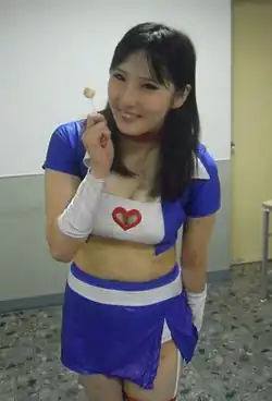 Makoto's 2009 was highlighted by a feud with her former partner Etsuko Mita, which built to Mita's retirement match on November 1, 2009, where she defeated Makoto.[27][28][29] The feud with Mita also led to the evolution of Makoto's character, turning her from a weak and scared comedic character to a more serious competitor.[1][2] In 2010, Makoto began making appearances for other promotions such as Kaientai Dojo, Osaka Pro Wrestling, Pro Wrestling Zero1 and Smash.[27] On December 26 at Ribbon Mania 2010, Makoto faced Tajiri in a losing effort.[30] In January 2011, Makoto became the leader of a stable named "Heisei YTR" (Young Traditional Revolution), which also included Chii Tomiya, Hikari Minami, Kurumi, Riho and Tsukushi.[31] The group mainly feuded with the "Ichinisanshidan" stable, which included Hikaru Shida, Miyako Matsumoto, Mochi Miyagi, Tsukasa Fujimoto and Mika Iida, who was originally a member of Heisei YTR, but switched sides early on in the rivalry.[31][32] On February 6, Makoto and Riho made it to the finals of the Ike! Ike! Ima, Ike! Ribbon Tag Tournament, before being defeated by Hikaru Shida and Tsukasa Fujimoto in a match that was also contested for the International Ribbon Tag Team Championship.[33] On March 21, Makoto had another high-profile match against a male wrestler, when she was defeated by Taka Michinoku at Ice Ribbon March 2011.[34] During the first half of 2011, Makoto also made several appearances for Union Pro Wrestling, where she portrayed a tougher villainous character, working under the ring name Makoto-hime ("Princess Makoto") and managing Cao Zhang and Choun Shiryu during their Big China Unified Nakahara Tag Team Championship reign.[11][35][36]