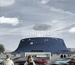 The design competition for the new stadium was won by architect Hrvoje Njirić in May 2008.[10] The winning design, nicknamed "Blue Volcano" (Croatian: Plavi vulkan), would have a capacity of 55,000 and would include a blue-coloured polycarbonate dome exterior and a cloud-like structure suspended above the stadium covered in photovoltaic panels.[11]