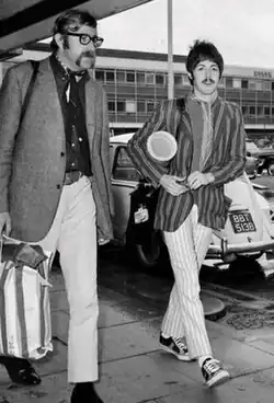 After the Magical Mystery Tour recordings, Evans flew to Nice with McCartney to shoot "The Fool on the Hill" promotional film, although McCartney set off without luggage or a passport.[32] McCartney got past customs by saying "You know who I am", but he and Evans were not allowed into a hotel restaurant in Nice because they "didn't look the part", and had to eat dinner in Evans' room.[32] Because the money they had with them had been spent on clothes (NEMS was supposed to send them more), they arranged for credit over two nights in a nightclub. Evans: "We took advantage of our credit standing, as money had still not arrived from England. News about Paul's [McCartney] visit to the club the previous night had spread, and the place was jammed. Now Paul, being a generous sort of person, had built up quite a bar bill, when the manager of the club arrived demanding that we pay immediately. On explaining who Paul was and what had happened, he answered, 'You either pay the bill, or I call the police.' It certainly looked like we were going to get thrown in jail. It was ironical, sitting in a club with a millionaire, unable to pay the bill."[32]