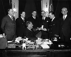 By 29 April 1932 President Herbert Hoover was prepared to present Freeburg with the first of a new air mail pilot's medal for Heroism after being recognized for his action of courage and resourcefulness on 12 April 1931 and prior on 12 July 1930. On 13 December 1933, at 11 AM in a ceremony held in the White House, the recently elected President Franklin Delano Roosevelt would make the presentation of the first "Airmail Flyers' Medal of Honor" due to delays in the medal design and the presidential election.