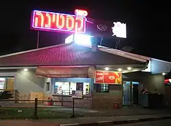 In addition, the junction is a common stop for Israelis traveling between the north/center of the country (Haifa, Tel Aviv) to the south (Beersheba, Eilat), a fact that helps maintain several fast food and other small stores. The junction has a Better Place battery replacement station.[3]