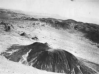 Malapai is an Americanization of the Spanish word malpaís, which can be translated as bad terrain.[8] The term malpaís is widely used to refer to badlands characterized by eroded rocks of volcanic origin. The cactus and xeric scrub plant community surrounding the mountain is characteristic of the stark and dry desert here.[3]