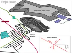 In 2008 and 2009, renewed exploration by Osisko Mining revealed an untapped new gold deposit, estimated at 9 million ounces, beneath the town. The Canadian Malartic Corporation received approval from the government of Quebec to launch what would become Canada's largest ever open pit gold mine.[9] The project, with an estimated cost of $1 billion, involved relocating most of the portion of the town lying south of Route 117, consisting of about 200 houses and several of the town's public facilities, to a new housing development in the north end of town.[9] This move was featured in season 4 of the television show Monster Moves. As of late 2009, most of the relocation work had been completed, and this, before the end of public consultations by Quebec's Ministry of Sustainable Development, Environment and Parks.[10]