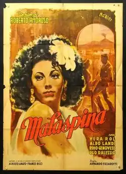 Malaspina is a 1947 Italian melodrama film directed by Armando Fizzarotti and starring Vera Rol, Aldo Bufi Landi and Rino Genovese. It is a melodrama, based on a popular song of the same name. Its story of female wrongdoing and ultimate redemption was characteristic of Neapolitan-style cinema.