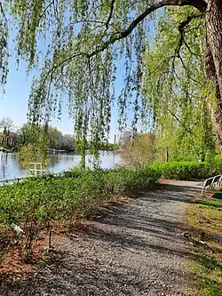 The Malden River is a 2.3-mile-long (3.7 km)[1] river in Malden, Medford, and Everett, Massachusetts. It is roughly 675 feet (206 m) wide at its widest point and is very narrow at its smallest point. Its banks are largely occupied by industrial business, and the river is scarcely used or even mentioned. Its water quality is worse than most local waters, including the Mystic River, into which it flows. The Mystic River Watershed Association is working and creating educational programs to help the environment. The Association works on projects to improve the Mystic River and tributaries, lakes and ponds and greenways along the waterfronts. Rivergreen Park is part of the Mystic Greenways and is along the Malden River. [2][3] The Friends of the Malden River organize clean-up events.[4]