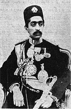 Prince Malek Mansur Mirza (Persian: شاهزاده ملک منصور میرزا; 30 March 1880 – 6 November 1922) was an Iranian prince of the Qajar dynasty. He was Mozaffar ad-Din Shah Qajar's second son and a brother of Mohammad Ali Shah Qajar, Abul-fat'h Mirza Salar-ed-Dowleh and Abul-Fazl Mirza.[1]