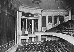 The announcement that the Tibetan government had formally authorised the third expedition to Everest came on 16 October 1922 at a combined meeting of the Royal Geographical Society and Alpine Club at Methodist Central Hall, Westminster.[360] The Everest Committee resolved that the third expedition would commence in spring 1924.[361] The committee was eager to generate money to cover some of the 1924 expedition's costs and discussed terms for a lecture programme.[362] A large-scale lecture tour was organised, with Mallory and George Finch selected as the two speakers.[363][364] On 20 October 1922, Mallory and Finch at the Central Hall, City of Westminster, delivered their first public lectures concerning the 1922 expedition, including photo illustrations.[364][365] During the winter, Mallory presented a round of talks throughout Britain and Ireland, filling engagements in places such as Aberdeen, Brighton and Dublin,[366][367] receiving 30% of the proceeds.[367][368] In addition to authoring Everest and Himalaya-related articles for periodicals and encyclopaedias to supplement his income, the committee requested he contribute to the official book of the 1922 expedition, The Assault on Mount Everest: 1922.[369]