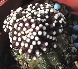 Mammillaria luethyi is easily propagated vegetatively, as grafted plants produce clusters that can be used for rooting or further grafting. However, growing the plant from seeds remains difficult because successful germination depends on the seeds reaching the correct stage of maturity.[14] Two cultivars have proven popular: one is crested, the other bright yellow, called M. luethyi 'Aurea' or Mammillaria luethyi f. aurata. Such vibrant, chlorophyll-deficient forms typically require grafting onto green stocks and do not tolerate direct sunlight.[5]