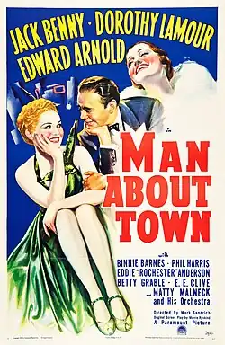 Man About Town is a 1939 musical comedy film starring Jack Benny, Dorothy Lamour, and Edward Arnold.