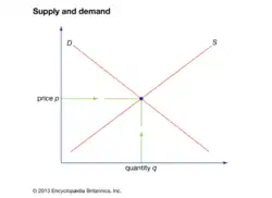 The principle uses the conjecture of supply and demand to set an accurate price for a good.[21] The aim of price theory is to allocate a price for a good such that the supply of a good is met with equal demand for the product.[21] If a manager sets the price of a good too high, the consumer may think it is not worth the cost and decide not to purchase the good, hence creating excess supply. The opposite occurs when the price is set too low, causing demand for a good to be greater than supply.[21]