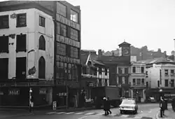 The area was a patchwork of mostly Victorian buildings on a 17th and 18th century layout of streets, alleys, and courts.[25] A map used for the 1961 meeting of the British Association shows shops fronting Market Street and Cross Street, with warehousing or office buildings behind.[31]