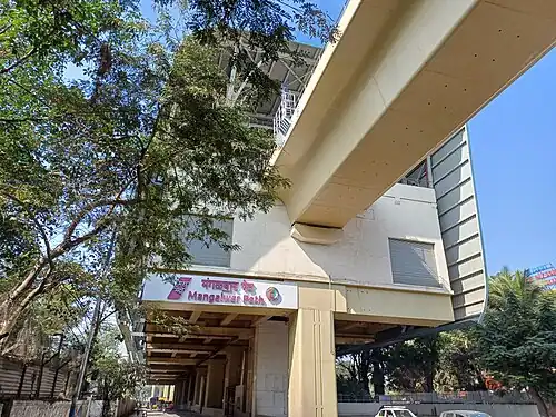 Mangalwar Peth is an elevated metro station on the East-West corridor of the Aqua Line of Pune Metro in Pune, India. The station was opened on 1 August 2023 as an extension of Pune Metro Phase I.[1] Aqua Line operates between Vanaz and Ramwadi.[2][3]