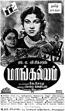 Mangalyam (transl.Mangala sutra) is a 1954 Indian Tamil-language film directed by K. Somu and written by A. P. Nagarajan. The latter also stars (using the credit "Naalvar Nagarajan") alongside B. S. Saroja.[2] The film was released on 11 June 1954.[3]