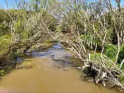![]() Mangatāwhiri River between the old and new Great South Rd bridges | |