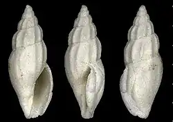 | Shell of †Mangelia semicostulata (specimen at MNHN, Paris) | |