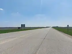 PTH 30 begins at the North Dakota on the south side of Gretna, with the road continuing south towards Neche and Cavalier as North Dakota Highway 18 (ND 18). It almost immediately makes a sharp right, curving northward around the eastern side of Gretna, having an intersection with Hespeler Avenue. The highway leaves Gretna and heads due north, having a short concurrency (overlap) with PR 243 (Boundary Commission Trail) on its way to pass by Gnadenfeld, where it junctions with PR 421, and enter the town of Altona. PTH 30 mostly bypasses the town along its eastern side, travelling through neighbourhoods and past a few businesses, where it becomes concurrent with PR 201 (Central Avenue E). The two continue north to leave Altona, with PR 201 splitting off shortly thereafter and PTH 30 continues north for a few kilometres through farmland, crossing the Buffalo Channel, to the southern edge of Rosenfeld, where the designation comes to an end at an intersection with PTH 14. The road continues north into central Rosenfeld as PR 332 (Main Street).[2][3]