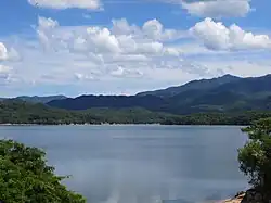 Nestled in the mountains, this lake reservoir is one of the largest in Japan, with a volume of 15,400,000 m3.[4] Kagawa has low rainfall, so rain dances and water reservoirs have been important throughout history, particularly for rice production.[5] The original dam was built about 1,300 years ago, from 701 to 704. In 821 the dam lay in disrepair and a larger version was built by the Buddhist monk Kūkai on the Emperor’s request. Since then the dam has fallen into disrepair and been rebuilt 3 times to reach its current size. The water is used for rice paddy irrigation, and every year in June there is a ceremony to start the yearly flow. Four tonnes of water gush out every second to reach rice paddies as far away as Marugame City. There is also a shrine and a temple near the lakefront.