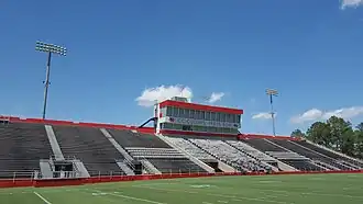 Manning Field at John L. Guidry Stadium is a 10,500-seat multi-purpose stadium in Thibodaux, Louisiana.[2] It is home to the Nicholls Colonels football team of the Southland Conference in the Football Championship Subdivision (FCS). The stadium is named in honor of former state representative John L. Guidry who was instrumental in the establishment of Francis T. Nicholls Junior College. The playing surface is named Manning Field after the Manning family (Peyton, Eli, Cooper and Archie) because the family holds the annual Manning Passing Academy football camp at the facility.[3] The current playing surface is GeoGreen Replicated Grass.[4] The stadium was officially dedicated on September 16, 1972.