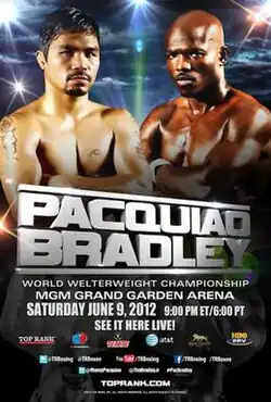Manny Pacquiao vs. Timothy Bradley, billed as Perfect Storm, was a professional boxing match contested on June 9, 2012, for the WBO welterweight championship. It was held at the MGM Grand Garden Arena in Paradise, Nevada.[2] After 12 rounds, Bradley won a highly controversial split decision to take the WBO welterweight title.[3][4]