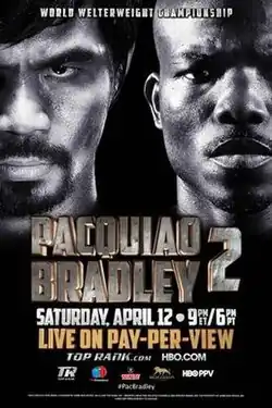 Pacquiao won by unanimous decision and took the WBO welterweight title, ending Bradley's undefeated streak.[2][3][4]