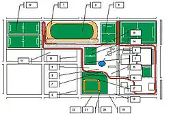 The Gorki Grana Municipal Recreational and Sports Center is located on the site of the Mansión Sere clandestine detention center, on an 11-hectare property at 3530 Santa María de Oro Street, Castelar sur, Morón.[2] It has sports and recreational facilities which can be accessed free of charge.