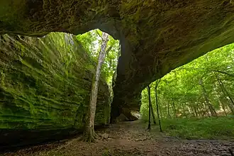 The site is owned and protected by the Kentucky Nature Conservancy and is accessed by a gravel road off of Kentucky Route 133, just west of the small community of Joy, Kentucky. It includes a natural sandstone arch, several springs, and woodland, in a valley in the watershed of McGilligan Creek. It includes a part of the original Salem-Golconda Road. It is associated with the Cherokee Trail of Tears.[2]