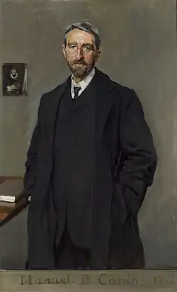 Manuel Bartolomé Cossío (22 February 1857 – 2 September 1935) was a Spanish art historian and Krausist teacher. Born in Haro, La Rioja, he entered the Institución Libre de Enseñanza, where he was the godson and favourite pupil of Francisco Giner de los Ríos as well as his inseparable companion and successor. He also wrote a monumental study of El Greco.[1] He was director of the Museo Pedagógico Nacional and president of the Misiones Pedagógicas, becoming "the most eminent figure in Spanish pedagogy in the period 1882 to 1935", two years after his death.[2] He died at Collado Mediano in Madrid.