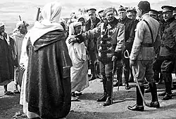 After stopping in Ceuta, Silvestre travelled to Meilila in 1920 to take up the position as Commandant-General of the city. From Meilila, in January 1921, he led the Riff invasion to destroy the local resistance, now led by Abd el-Krim. Berenguer commanded from his headquarters at Tétouan, south of Ceuta, and Silvestre was based at Meilila, 130 miles away, which adversely affected the quality of communication between them.[7] In March 1921, Silvestre met Berenguer aboard the cruiser Princesa de Asturias to plan the operations in spring.[9] Silvestre disregarded the Moroccans as a serious enemy, said he had all the troops and equipment that he needed, and stated that: "The only way to succeed in Morocco is to cut off the heads of all the Moors".[9] French Marshal Hubert Lyautey, who commanded the forces in French Morocco, complained that the Spanish lacked cultural sensitivity and often gratuitously offended the Islamic traditions of the Moroccans by openly engaging the services of the ubiquitous prostitutes, who followed the Spanish Army everywhere in Morocco; by engaging in harassment of Muslims on the streets; by dishonest and bigoted treatment of Moroccan tribal chiefs; and by all too often simply assuming that an "iron fist" approach was the best way to deal with the Moroccans.[9] Lyautey criticized the Spanish Army in Morocco in general, but Silvestre exemplified it perfectly, with his arrogance that led him to dismiss the Moroccans as hopelessly inferior and his firm belief in the "iron fist".[9]