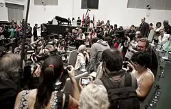 Carmena ran for re-election in the 2019 municipal election,[28] but stated that she would retire from the City Council should she not be re-elected as Mayor.[29][30] In November 2018, the political platform for Más Madrid was unveiled, with Carmena at its centre.[31] In the municipal election held on 26 May 2019, Más Madrid was the most-voted party, obtaining 19 seats in the plenary assembly, but on 15 June 2019, the People's Party's mayoral candidate José Luis Martínez-Almeida, with the support of Citizens and Vox, earned the vote of an absolute majority of councillors (29 out of 57 councillors) and was elected as Mayor.[32][33] On 17 June 2019, Carmena resigned from her councillor seat.[34]