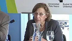 After passing public examinations to become a judge, she started her judicial career in January 1981.[14] As a judge she began an almost solitary fight to prevent corruption in existing courts.[15] In 1986 she received the National Human Rights Award.[16] She was a founding member of the progressive association Judges for Democracy.[14] Judge of Penitentiary Vigilance and head of the Penitentiary Vigilance Court No. 1 of Madrid, she was elected senior judge of Madrid in 1993.[17] She was appointed as member of the General Council of the Judiciary (proposed by United Left)[18] and served from 1996 to 2001.[19]