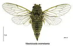 - ^ a b c d "Maoricicada oromelaena (Myers, 1926)". Manaaki Whenua - Landcare Research. Retrieved 17 December 2018.