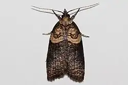 The wingspan is 16–18 mm. The forewings are fuscous, tinged with purplish and sprinkled with dark fuscous, as well as suffused with dark ashy fuscous towards the middle of the costa and towards the termen mixed with reddish ochreous and strigulated (finely streaked) with dark fuscous. The hindwings are light grey.[5]
