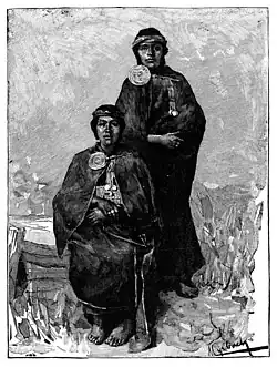 Tomás Guevara has postulated another unproven hypothesis claiming that early Mapuches dwelled at the coast due to abundant marine resources and only later moved inland following large rivers.[9] Guevara adds that Mapuches would be descendants of northern Changos, a poorly known coastal people, who moved southwards.[10] This hypothesis is supported by tenuous linguistic evidence linking a language of 19th century Changos (called Chilueno or Arauco) with Mapudungun.[11]