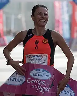 María José Pueyo Bergua (born March 16, 1970, in Jaca, Huesca) is a Spanish marathon runner.[1] At age thirty-eight, Pueyo made her official debut for the 2008 Summer Olympics in Beijing, where she competed in the women's marathon, along with her compatriots Alessandra Aguilar and Cuban-born Yesenia Centeno. She finished the race in sixty-fourth place by thirty-one seconds ahead of Hungary's Petra Teveli, with a time of 2:48:01.[2]