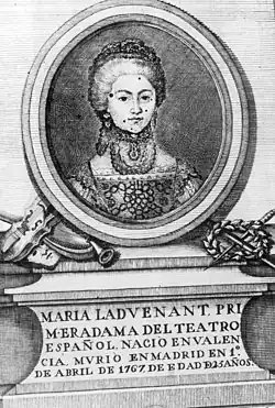 María Ladvenant (1741, Valencia–1767, Madrid) was a Spanish stage actress. Her short and successful but tumultuous career and her early death made her the subject of legend and she was celebrated by authors such as José Cadalso, Leandro Fernández de Moratín and Jovellanos.